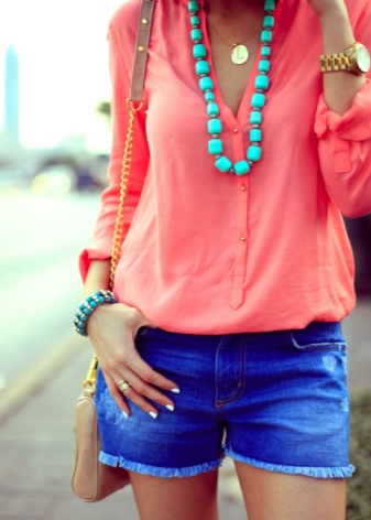 - Beads look great with blouses and shirts made of thin fabrics. Especially effectively they will look on the background of a slightly open collar (3-4 buttons).
