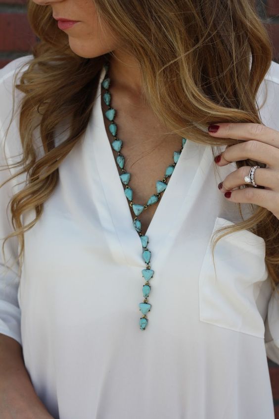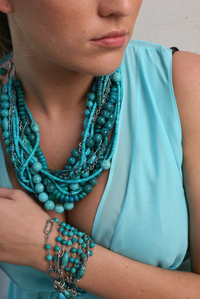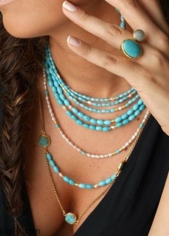 Jewelery with turquoise combined with everyday sets. This property can not boast of other jewelry with rubies or diamonds. You can wear a summer dress, formal suit or casual outfit and add beads to it.