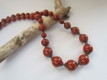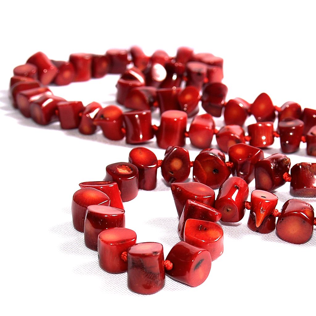 Bright coral beads look vivid in their natural form. Such a necklace in several layers will become a real decoration of a light summer look with translucent robes.