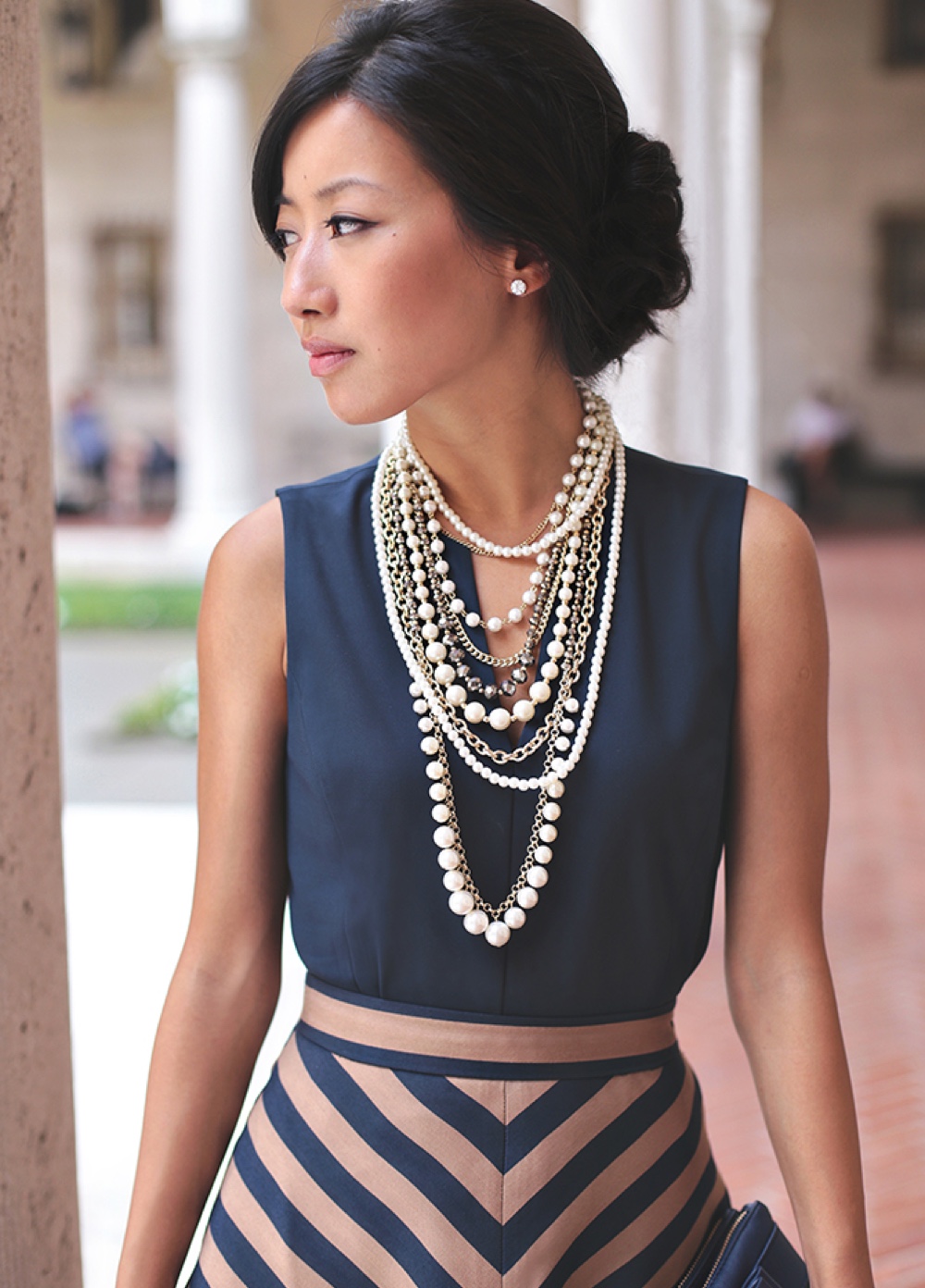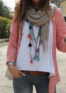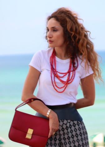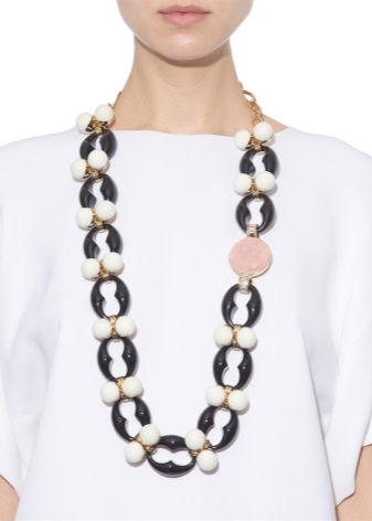 Short versions of beads are usually worn on the body, not on clothes. They will be an excellent accessory for both office style and everyday bows. Due to its versatility, such decorations are especially loved among numerous fashionistas.
