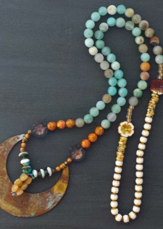 Designer jewelry from precious and semi-precious minerals amaze with a variety of shapes and colors. The rich imagination of the masters of jewelry helps them to create truly unique beads, which will be an excellent accessory in various female images. The dress in ethnic or boho style will harmoniously complement Indian beads from various natural minerals.
