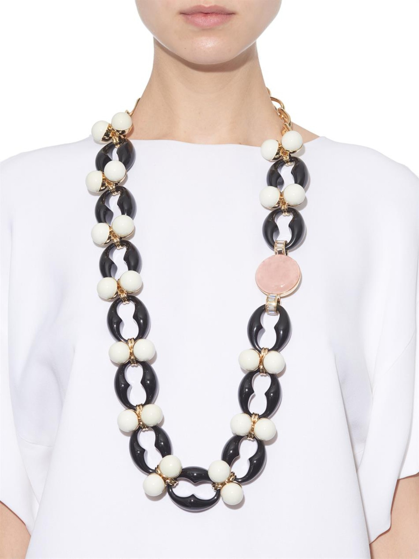 - Ladies with magnificent forms, it is better to abandon the necklace with large stones and choose long beads in a few turns, or with interlaced rows.