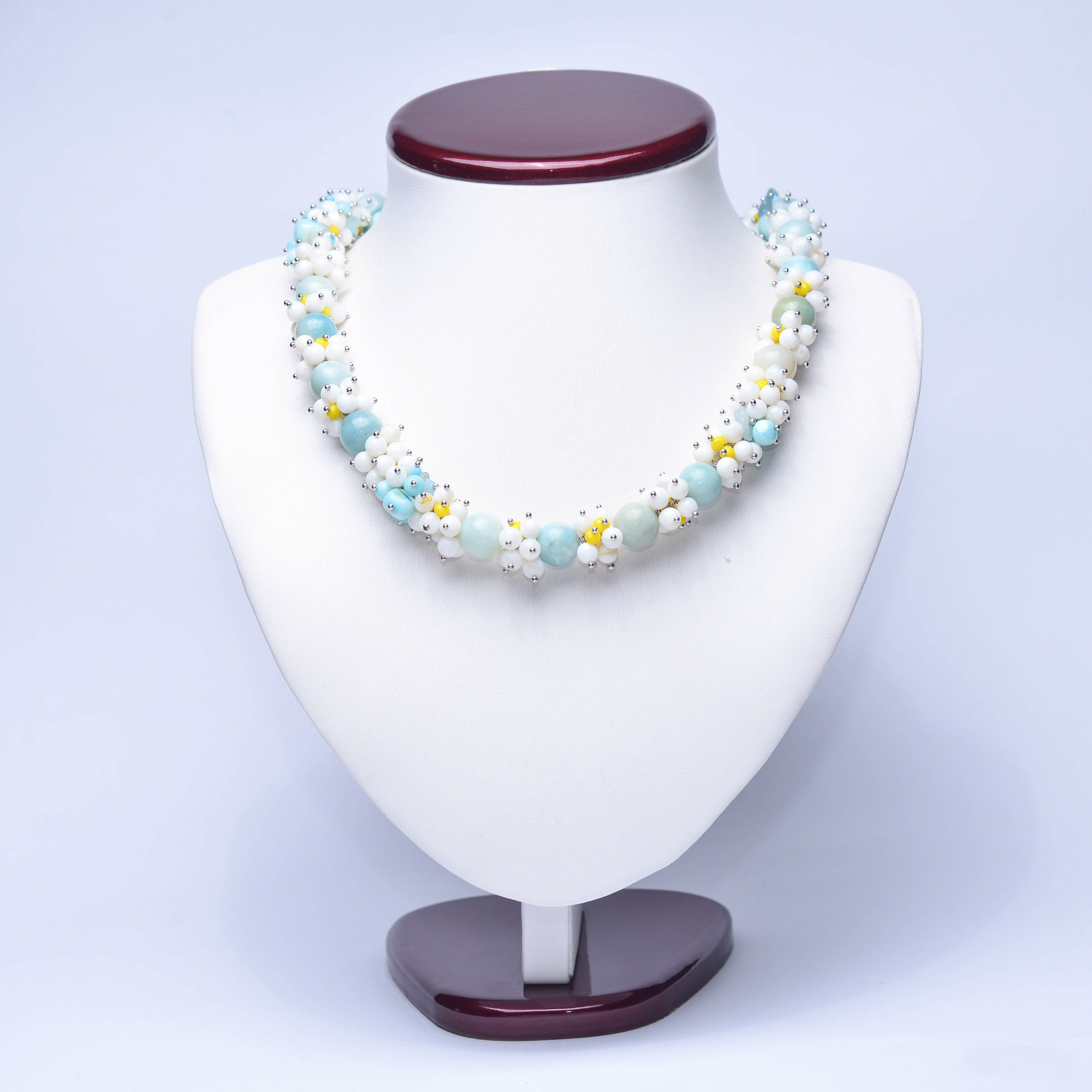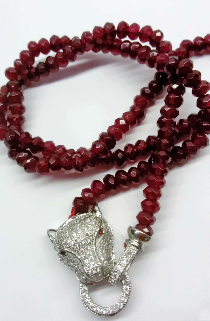 The necklace made of topaz or “Siberian diamond” is distinguished by the special durability of crystals and glass luster. Among the varieties of topaz emit more expensive and rare crystals of yellow, blue, pink and red and less valuable colorless, green or slightly colored. If you often wear jewelry with this gem, a person may develop intuition and the ability to quickly find a way out of difficult situations. Also, wearing this stone helps to grow spiritually and protects against detractors.