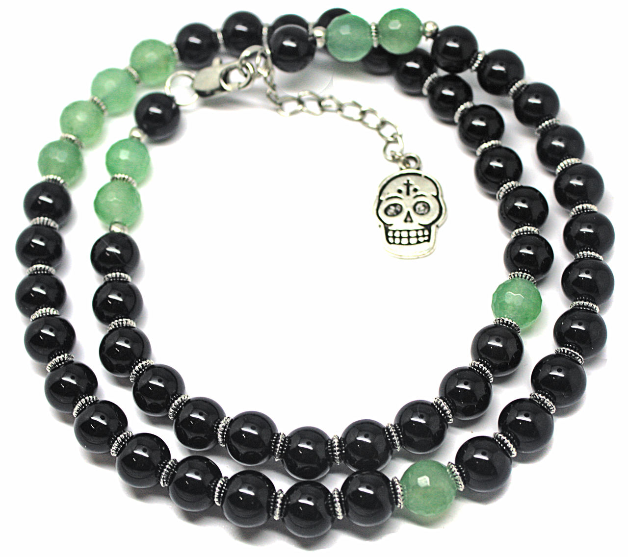 The use of black stones in beads - agate or oxydian - helps to establish confidence in oneself and one’s own strength and show resilience in any situation. Moreover, on the neck such a decoration looks contrasting and very attractive.
