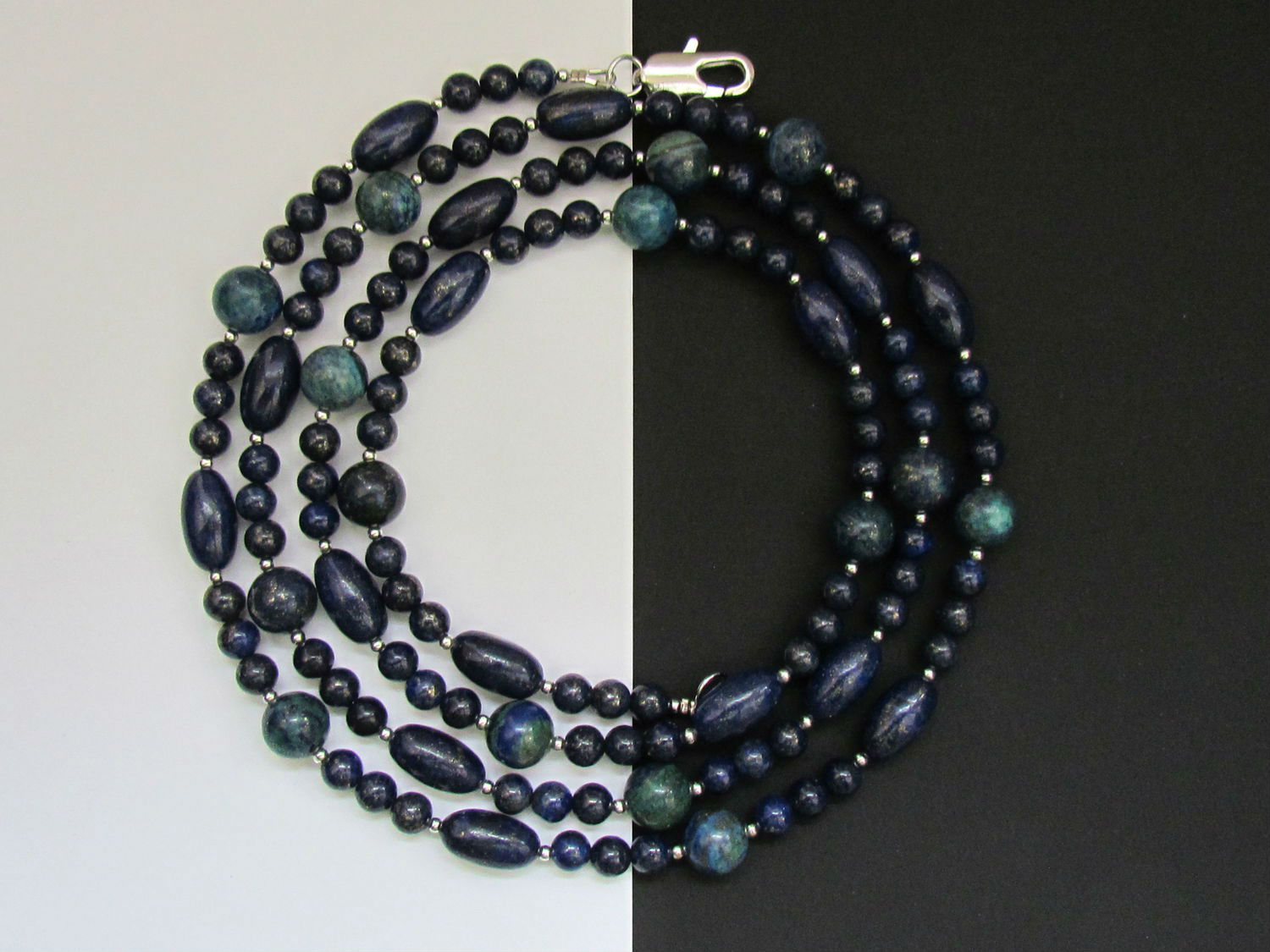 This lapis lazuli is refractory, when wet, it evenly distributes moisture over the surface and shimmers only on the sun. For people who choose lapis lazuli as their stone, wearing such beads promises success in one of four fields - career, financial condition, love or play, and also allows you to fill your life with spiritual meaning.