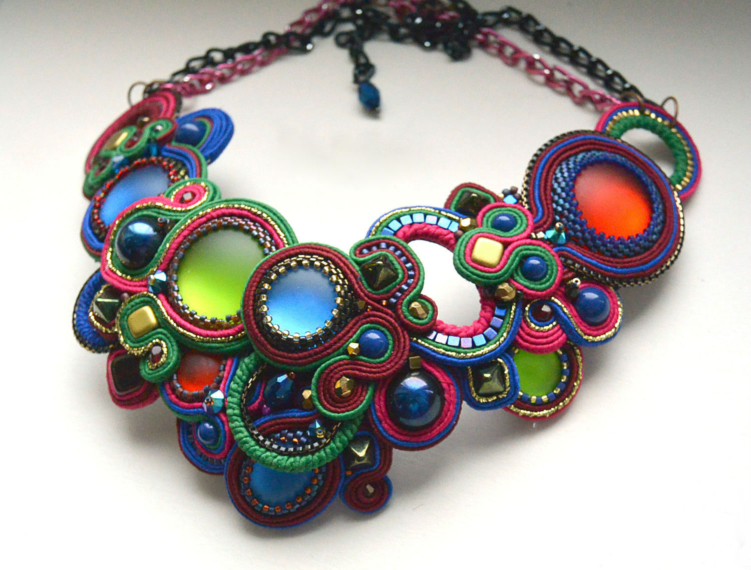 Unusual and very beautiful necklaces are obtained from a combination of beads and stones. And handmade products in soutache technique can be called a real and unique work of art, which will become an exclusive decoration for any dress or costume.