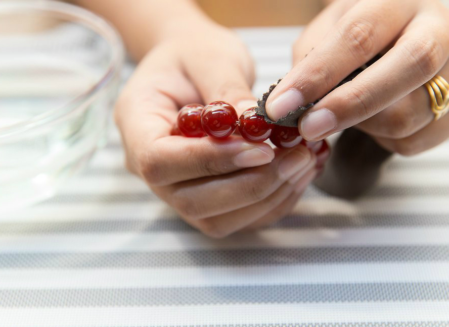 Most often for cleaning jewelry with natural stones are advised to use a weak soap solution, after which the beads are washed and dried. Alkaline environment is harmful for some minerals, and salt or liquid ammonia is used instead of soap. This, for example, applies to seafood - pearls, nacre and coral.