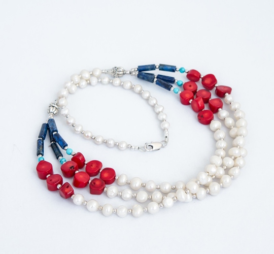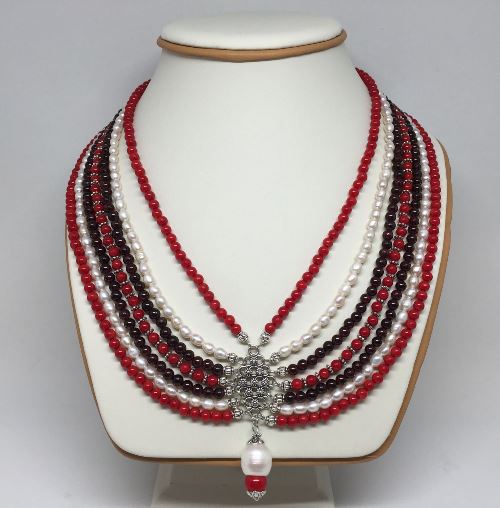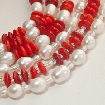 In addition to coral, the sea gave us pearls and nacre, which look great both individually and in one piece of jewelry. Due to the variety of colors of these minerals, you can choose an interesting color range, although the classic - red corals and white pearls, looks no less remarkable.