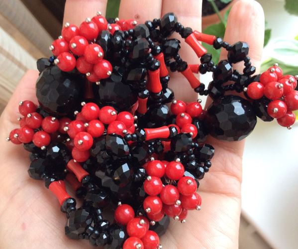 Most often in one piece you can find a combination of black agate and red coral. This spectacular tandem will be appropriate at all times.