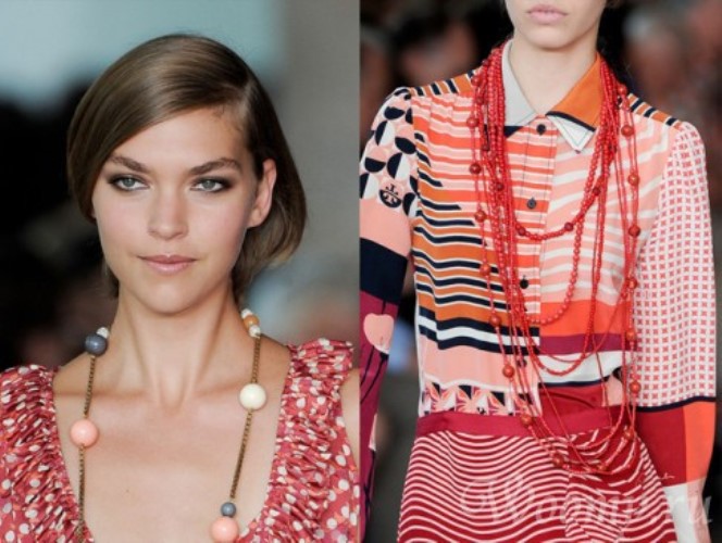 Bright beads will suit any monophonic clothing - dress, shirt, blouse. The exception is the images in the style of boho. If you are a fan of bohemian chic, feel free to wear a voluminous coral necklace with a colorful dress, a top and jeans or a colorful tunic.