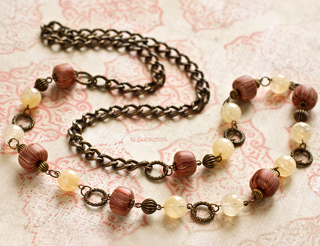 Also for everyday wear fit long chains with inserts of glass balls of various sizes. Such models will also complement the romantic outfit and retro style.