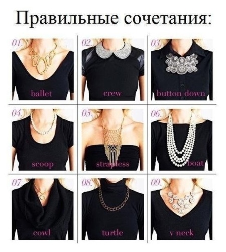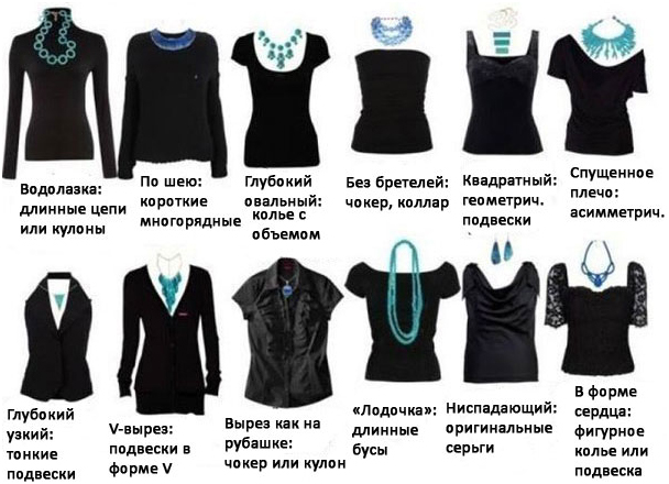 The choice of accessory depends on the cutout of clothes. For example, long will look great with blouses with a small round or V-neck. And short ones are more suitable for shirts, seductive neckline and square necklines.