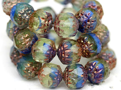 The beads used were of various shapes and sizes, solid and hollow. The latter were filled with white wax, which made them look like pearls.