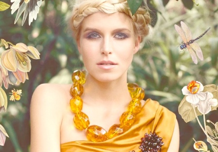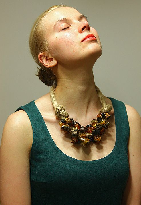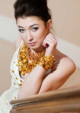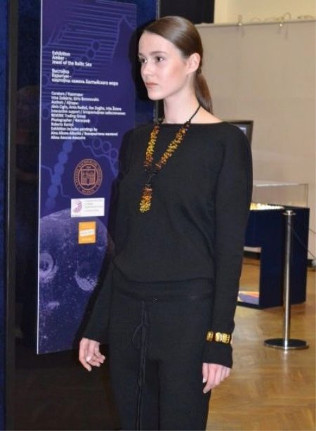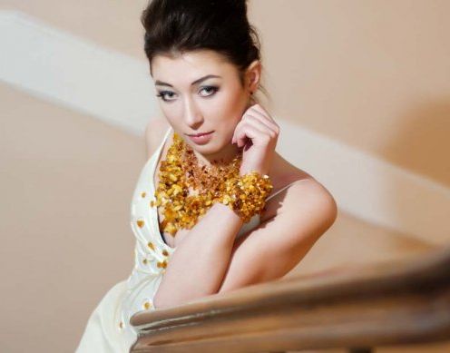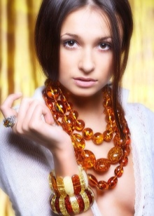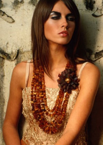 An elegant amber necklace will suit the evening dress. It must be made of polished gems, rough rough stones in such a bow are unacceptable. If you want to use additional decorations in your image, let them be made of gold or gilded silver.
