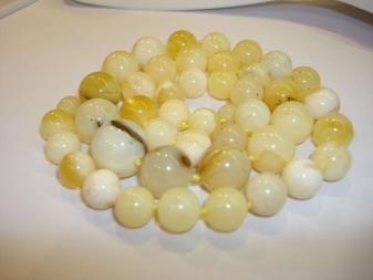 White amber can have colored blotches - blue, cognac, honey. Such gems act on the body most fruitfully, relieve insomnia, help fight outbreaks of anger.