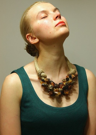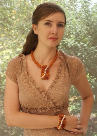 In the summer, a string of amber beads will complement a dress or a sundress made of light natural fabrics. It can also be a cotton blouse or tunic. Pay attention, it should be a concise decoration, give up coarse massive beads.