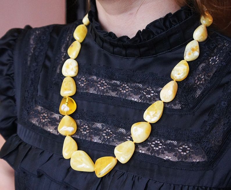 Please note that if you do not have serious diseases, beads of unpolished amber should be small. Owners of strong diseases can buy medium-sized beads. In any case, you can not start with a very large jewelry.