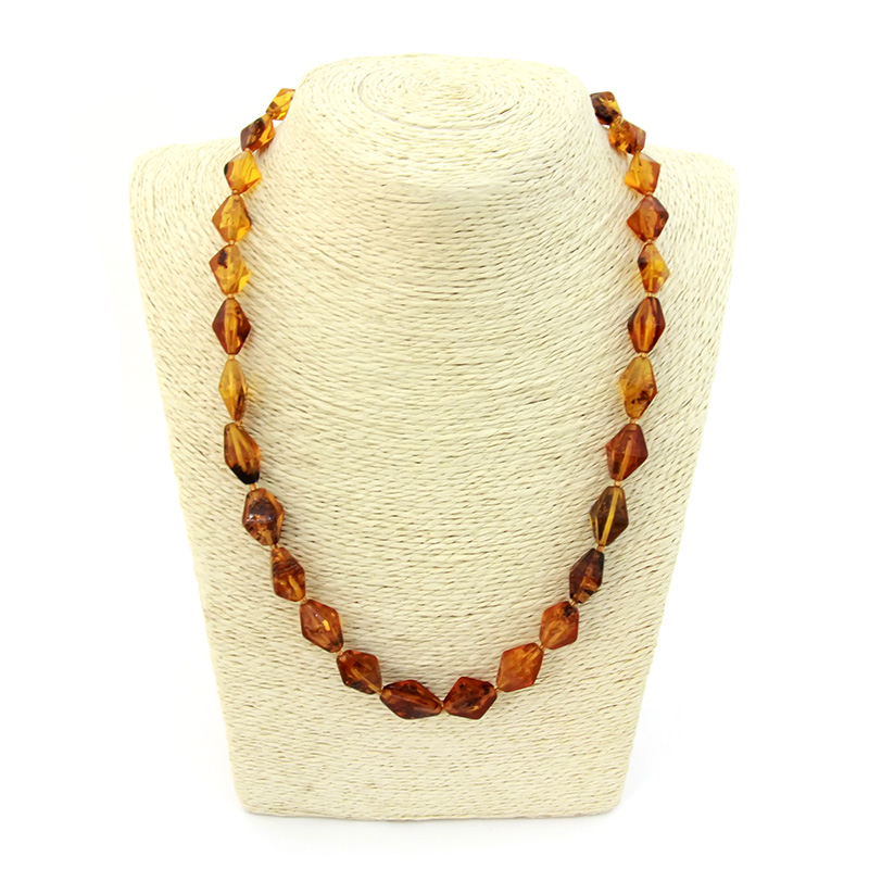 Faceted beads deserve special attention, since they look noble and stylish. The main advantages of faceted amber is the perfect transparency of a high-precision cut, which gives the beads a brilliance of precious stones, thanks to a special light refraction.
