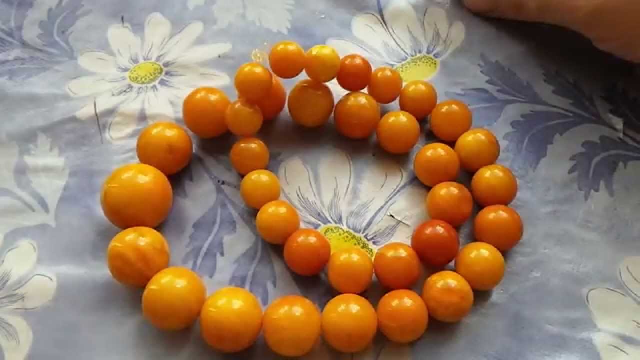 The most popular beads from honey, orange and golden amber. Such shades are called sunny. The shade “dull plum” looks unusual, it can be assumed that it is a purple stone, but in fact it is light olive, the color of an unripe cherry plum.