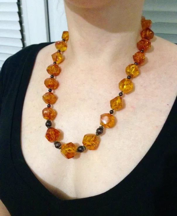 To become the owner of these amber beads, you need to carefully look at the jewelry you like in the store. There are many ways to check that you can make at home. But even standing at the counter, you will be able to recognize a clear fake.