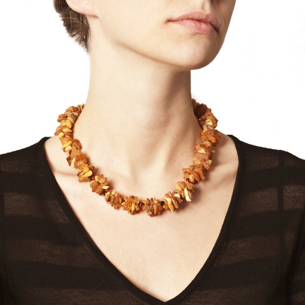 Coarse raw amber will look good in a casual look. This can be soft comfortable clothing in casual style or image in the style of boho-chic - flying dresses, jeans, suede.