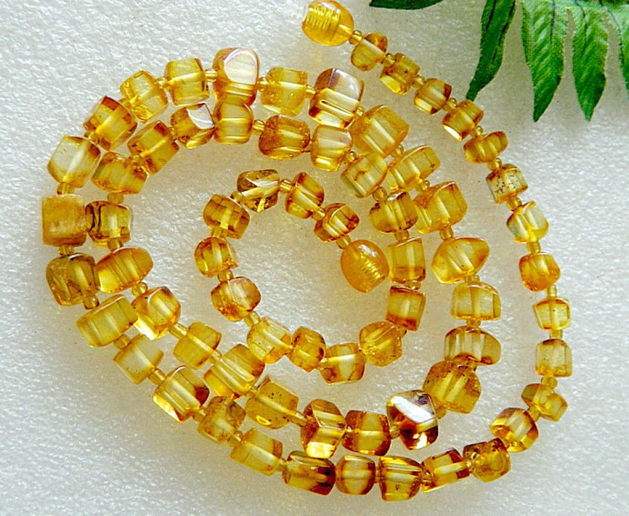 Pressed beads are made from small unpolluted amber, which remains from the extraction of gems. Such amber is called ambroid, in fact, it is also a natural stone. Only it was pre-ground into powder and, under pressure, gave it the desired shape.
