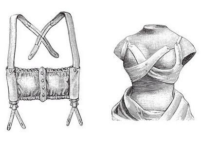 In one case, it was part of a corset, cut along the chest line with straps sewn to it. In another case, these were elastic bands with a piece of cloth.