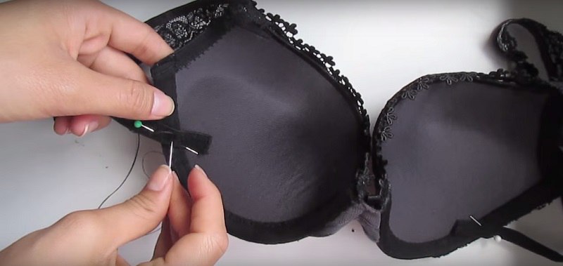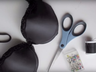 The side straps and bra belt should be cut off. Using pins, you must attach these straps to the bottom of the cups. After these actions, you must always try on the product and make sure that the straps are well connected. Only after all these actions, they can be sewn quietly.