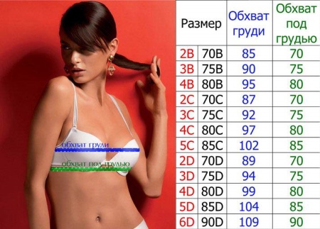 The difference in 12 cm indicates the category of cup A, in 14 - cup B, in 16 - cup C, in 18 - cup D, in 20 - cup E, in 22 - cup F, in 24 - cup G. On the bra label should be the name of the cup and the girth of the body are indicated - for example, C80 or B70