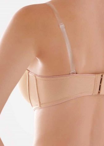 - if you have sloping or narrow shoulders, you should either refuse wide strapless, or purchase a special retainer, which is mounted on the back, in the middle of both straps, pulling them in and not letting them slip.