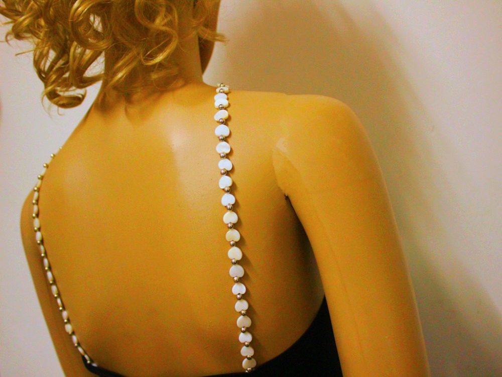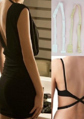 For dresses with an open back it is recommended to use additional straps for lengthening, which are then fixed under the breast. Or another option: one strap can be fastened with the free end to the second, then thread the head into the loop and remove the second shoulder strap. Also in this situation save decorative straps.