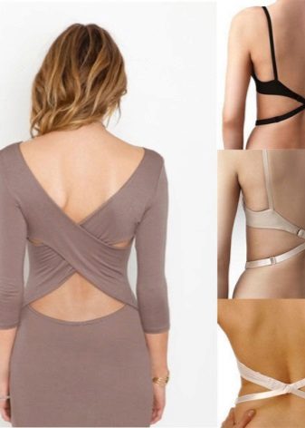 - crisscross straps - suitable for clothes with an open back and shoulders. The cross can pass both on the shoulder blades and under the bodice;