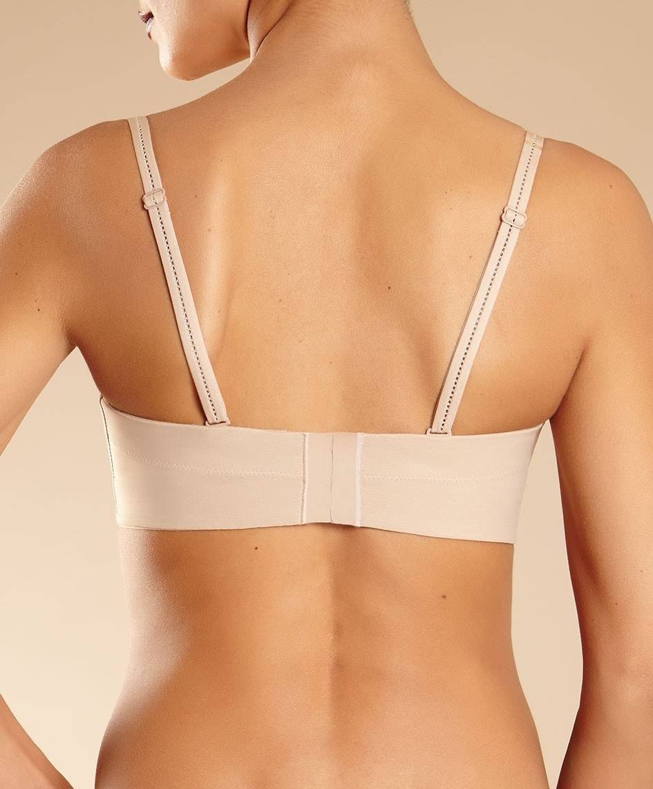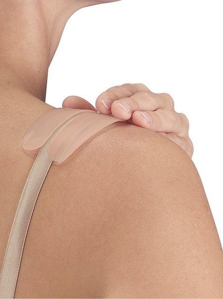 In order to prevent the straps from crawling, there are special silicone pads under them, which will also help if the straps of your bra cut into the shoulders. They are made of flesh-colored silicone, which makes them completely invisible.