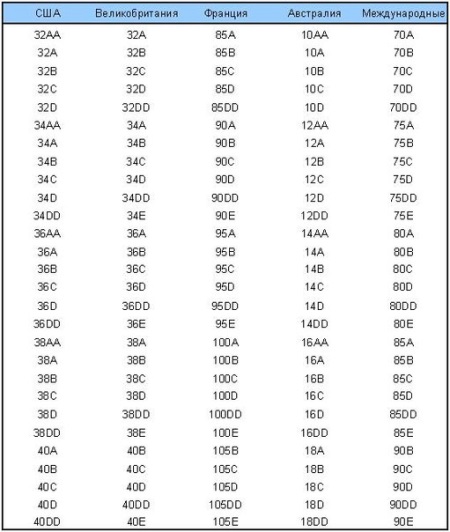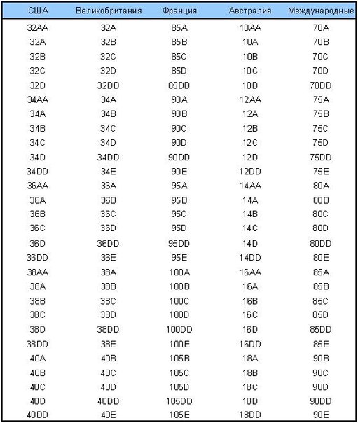 If you buy bustias made in England, USA, France, Australia, we present another size chart. For example, the size of Australian bras 10-18. Yes, there is no uniform, unified size table. Therefore, bras must be measured.