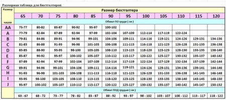 In order to correctly measure your breast size, it is better to contact the seller in the store. You need to know two indicators: the size of the belt and the size of the cup. It is necessary to stand while measuring with hands down. The size table shows the size of the chest and under the breast up to 120 cm in volume. There is, for example, the size of 85J. That is the largest bra in the girth of the chest to 152 cm.