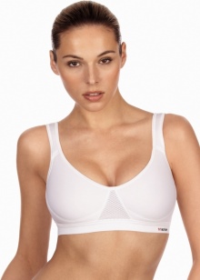 Sports bra with stitched cups gently and securely supports the chest and does not restrain movement. This model is perfect for active physical training.