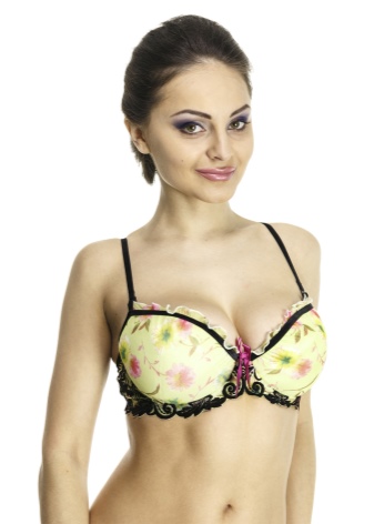 Insanely popular recently fashionable bras with floral prints. Figure may be large or small. Any bodice with such a bright addition will look positive and flirty.