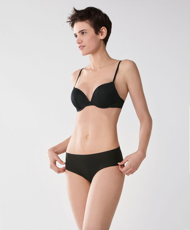 The model of push-up is one of the most popular and common among bras with underwire. These bras are equipped with special liners and hard bones that make the chest bigger.