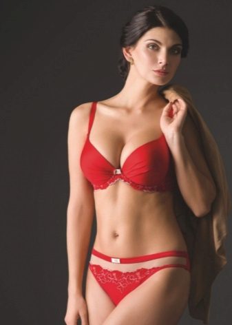 Bra push-up. This model is designed for visual breast augmentation, and significant. Foam rubber or gel in the form of special pads is inserted into the cup. It is very popular with women. However, it should be remembered that he can pinch the chest, so it is not recommended to constantly wear such a bra.