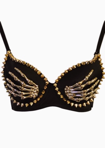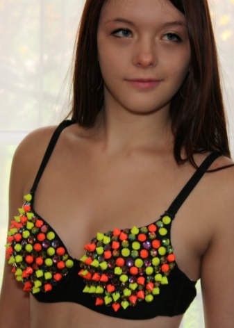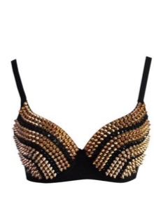 It is best to purchase finished products in stores. Bras are made of thick fabric, and the spikes are sewn firmly. If you want to create a decorated bra yourself, then the work should be done as carefully as possible, so that you do not get a ridiculous item of clothing.