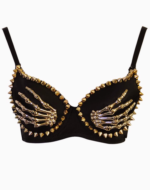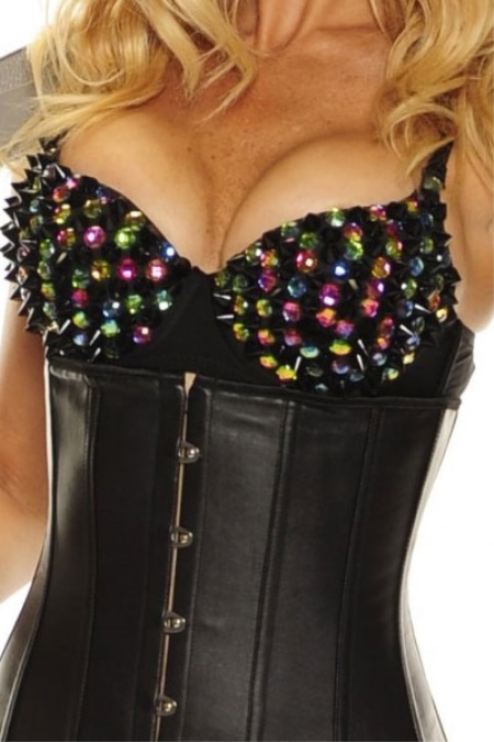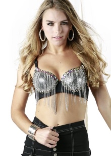 There should not be too many accessories. It is better to wear a not very large jewelry and jewelry, so that they do not stand out from the background of the ensemble with a bra decorated with spikes.