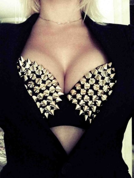 The original spiked bra is an unusual thing that not every fashionable woman has in her wardrobe. "Dangerous bra" allow themselves to wear only confident girls, experimenting with their own way.