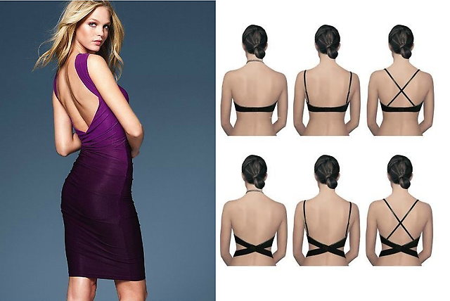 Practically with any things under which it is impossible to put on a bra with traditionally placed straps. First of all it concerns dresses or tops with an open back. In this case, the straps can be looped through the neck or removed altogether.