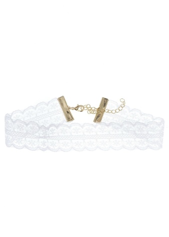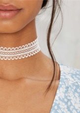 Snow-white accessories are able to bring different shades into the image. Lace choker is the accent of the charming image of a young fashionable woman and often replaces a wedding necklace. The model can be so airy and delicate that it will not yield in refinement to an accessory made of precious metal.