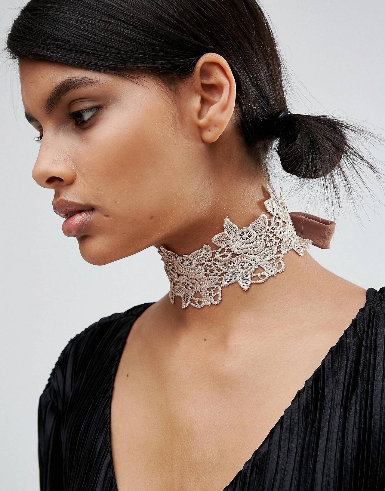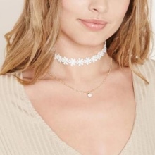 A lace necklace perfectly complements the evening outfit. Necklace choker made of pearls will be appropriate to look with an elegant classic suit with a skirt. The volumetric necklace will make the image incredibly feminine and will fit to the laconic adjacent dress above the knee length.
