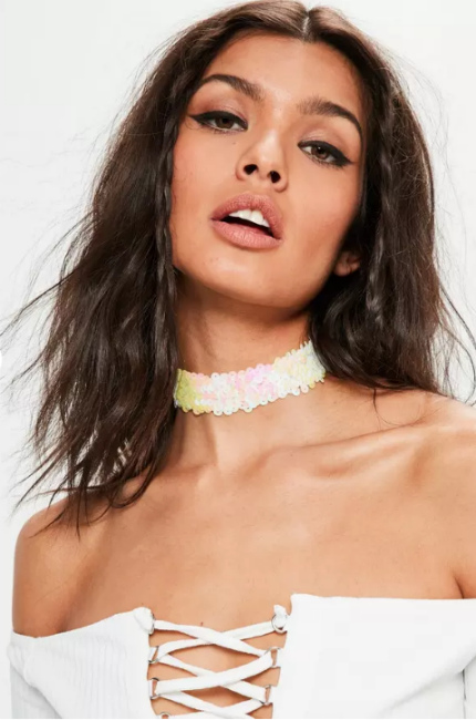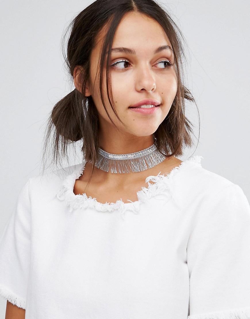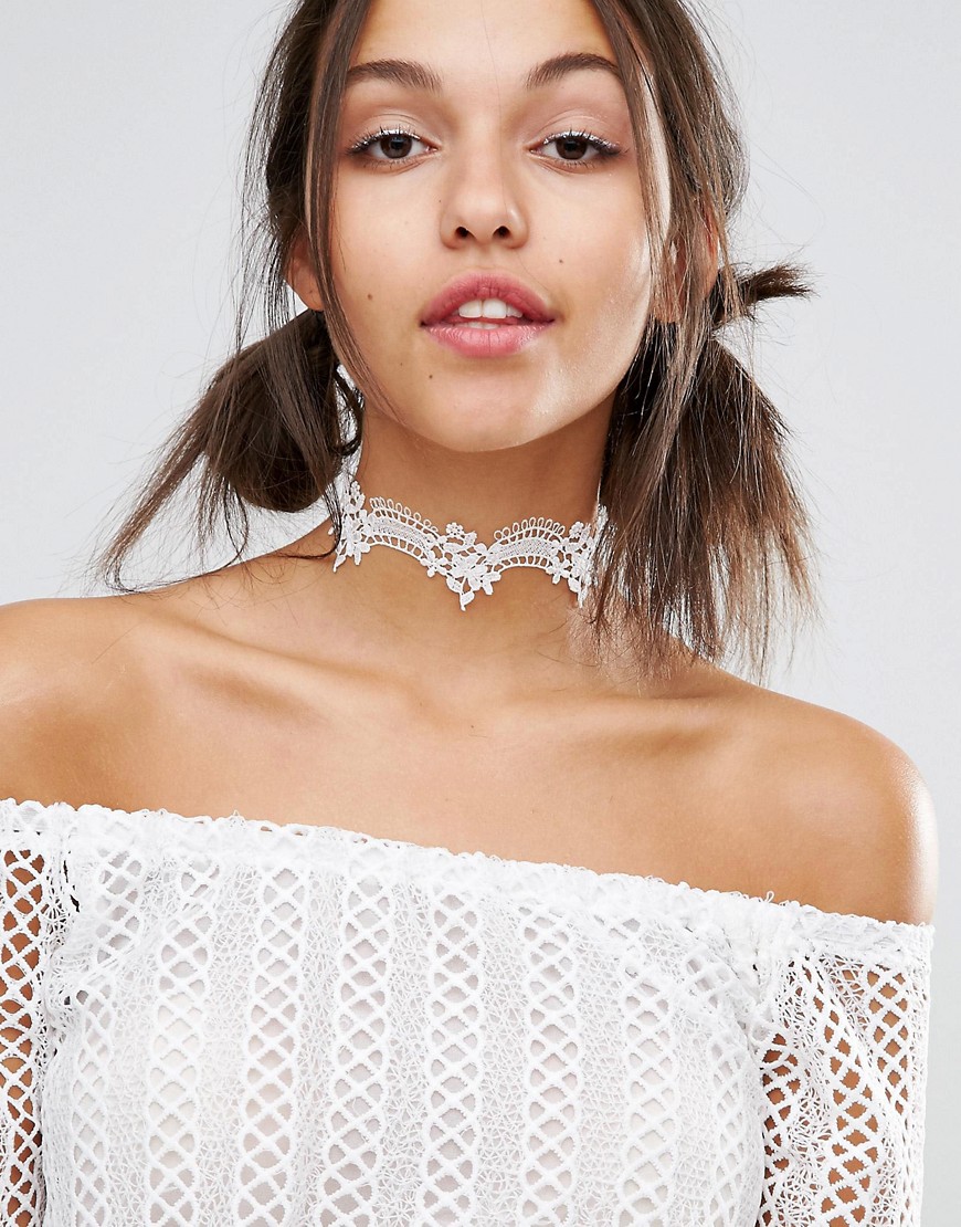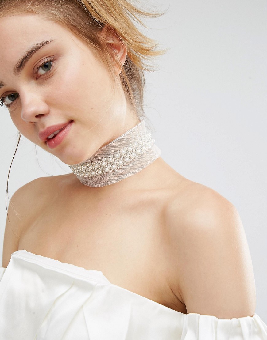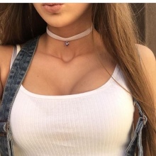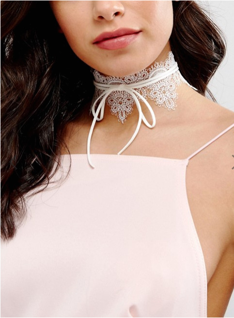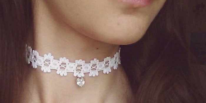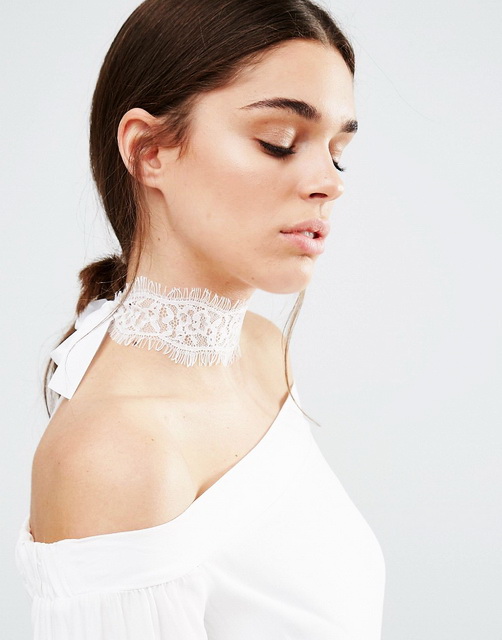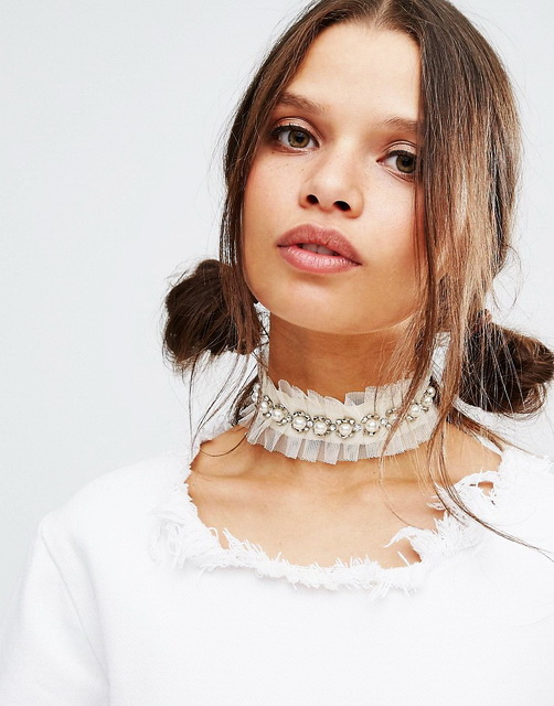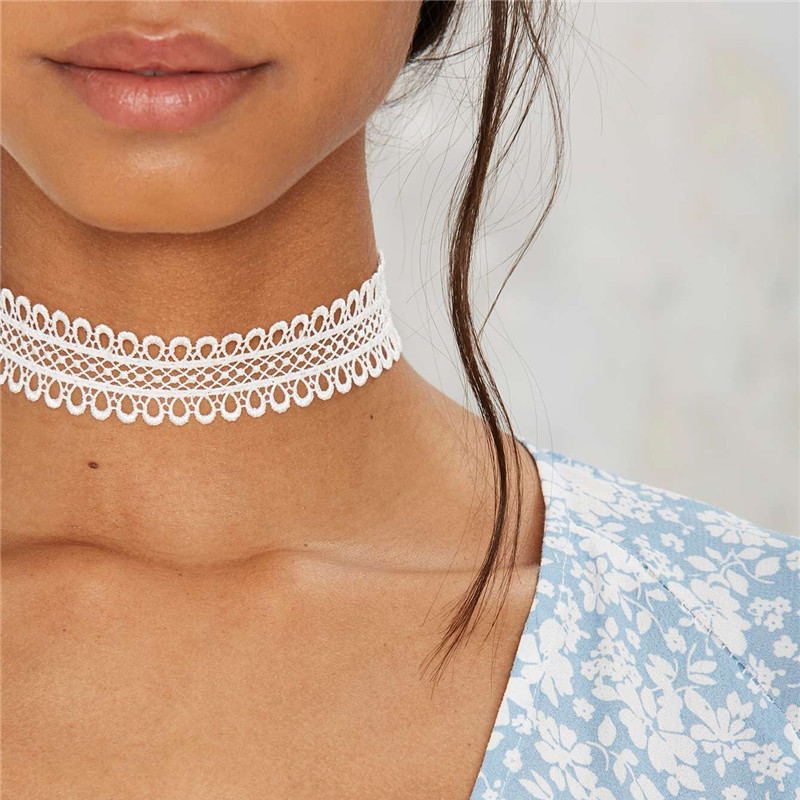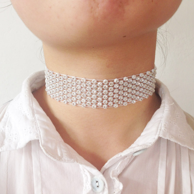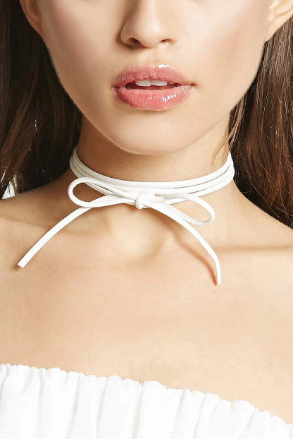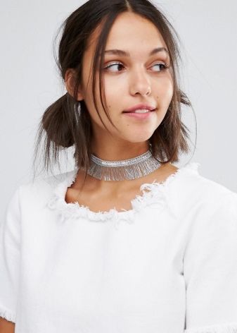 White choker is able to visually lengthen the neck, emphasizing its beauty. Today, he often replaces the gold chain and is considered a sophisticated completion of the image.