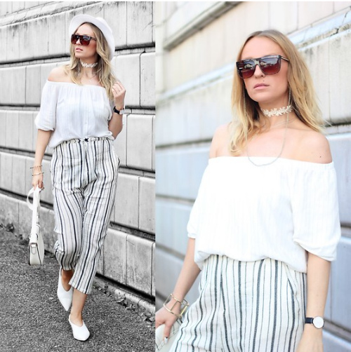 Wide models can be worn with a bright T-shirt, jacket and denim shorts.