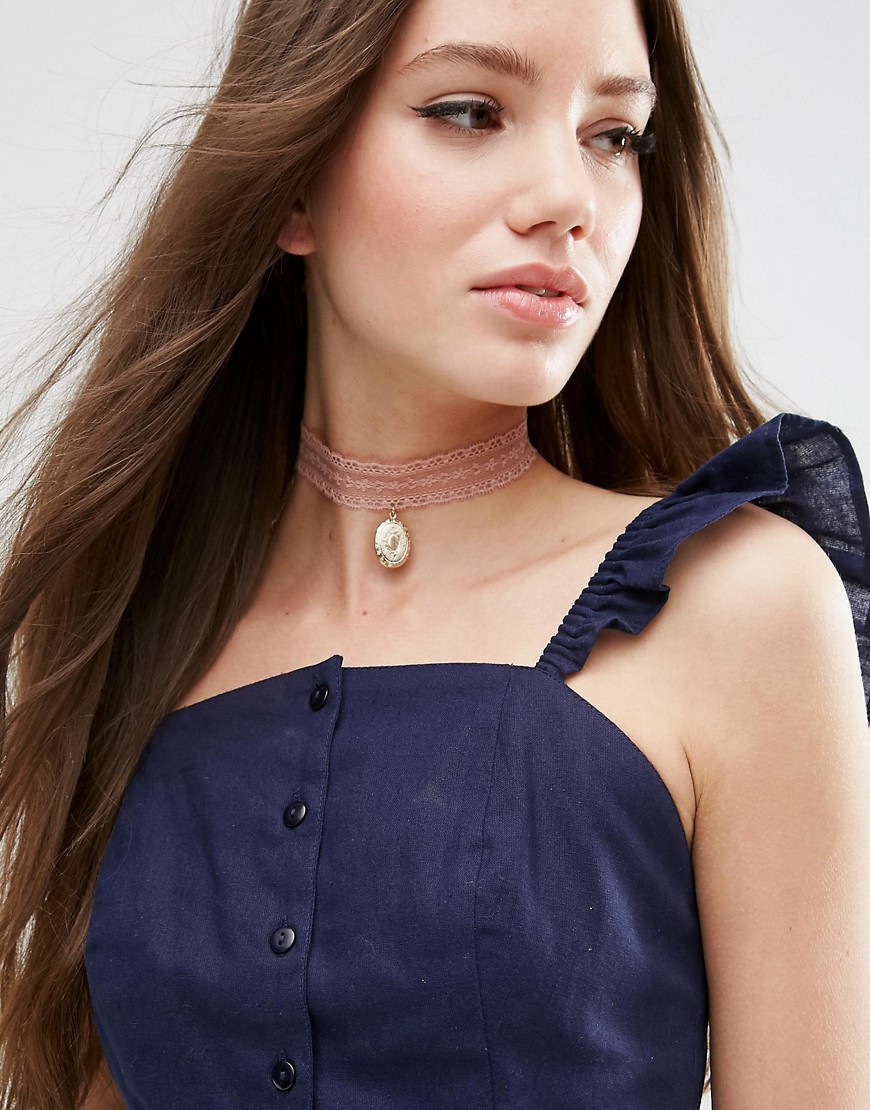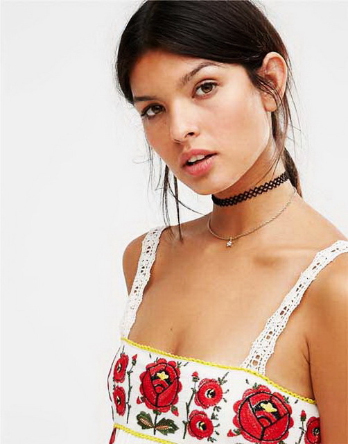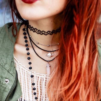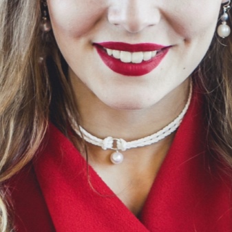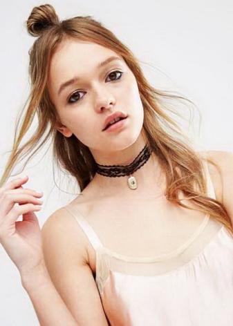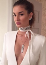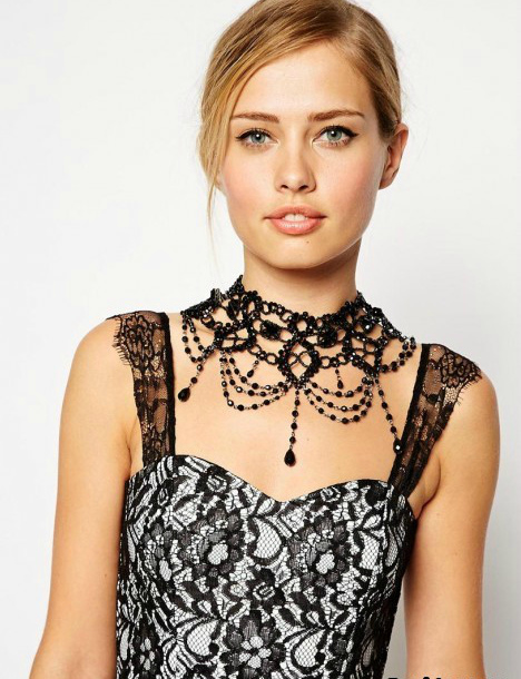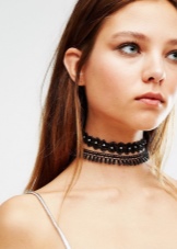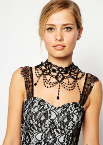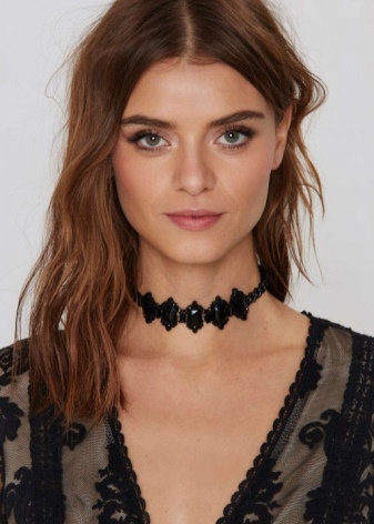 Whatever this type of jewelry is, it is best combined with a top or a dress with open shoulders or a deep V-neck. Lace choker in harmony with the dress well, if it contains such openwork inserts. However, if the dress is entirely laced, then such a decoration risks looking ridiculous.