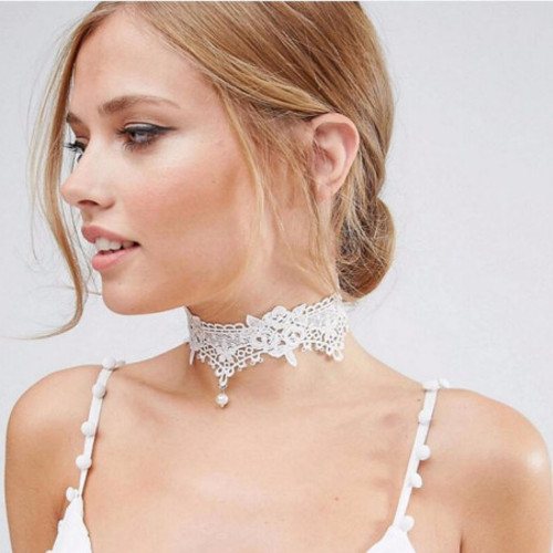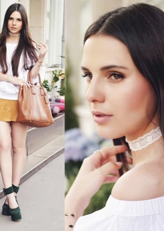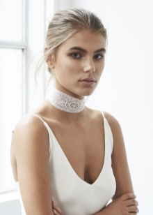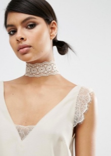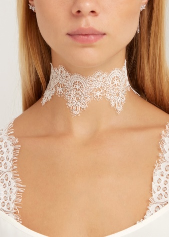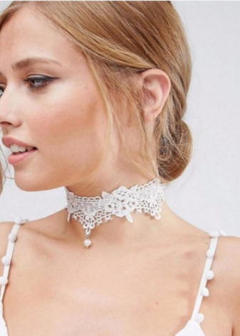 A thin strip of white lace is not less suitable for a normal day walk. Wearing a light sundress with a white openwork choker, you can safely go on a date and conquer the hearts of representatives of the opposite sex.