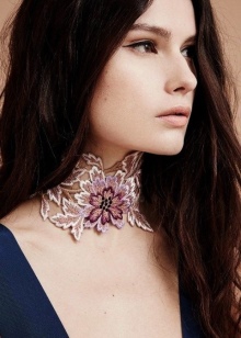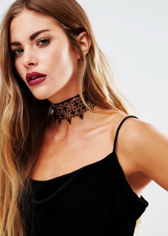 The choker is an elegant accessory that gives the image femininity, romance, sexuality. Modern designers offer many models of this small accessory. But the most popular and versatile remains the lace choker.